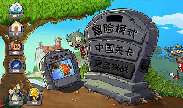 3、完成后选择一个想玩的游戏模式,有冒险模式、中国关卡、植物任务、联动模式、更多挑战等众多好玩模式;
