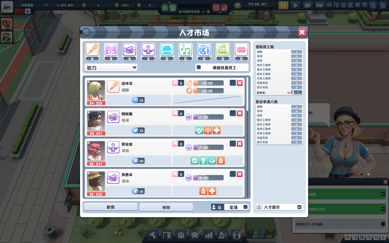 4、人才养成系统:能够签约潜力新星或顶级巨星,借助专属培训课程提升演员的演技水平,亲手打造属于自己的影视黄金阵容。