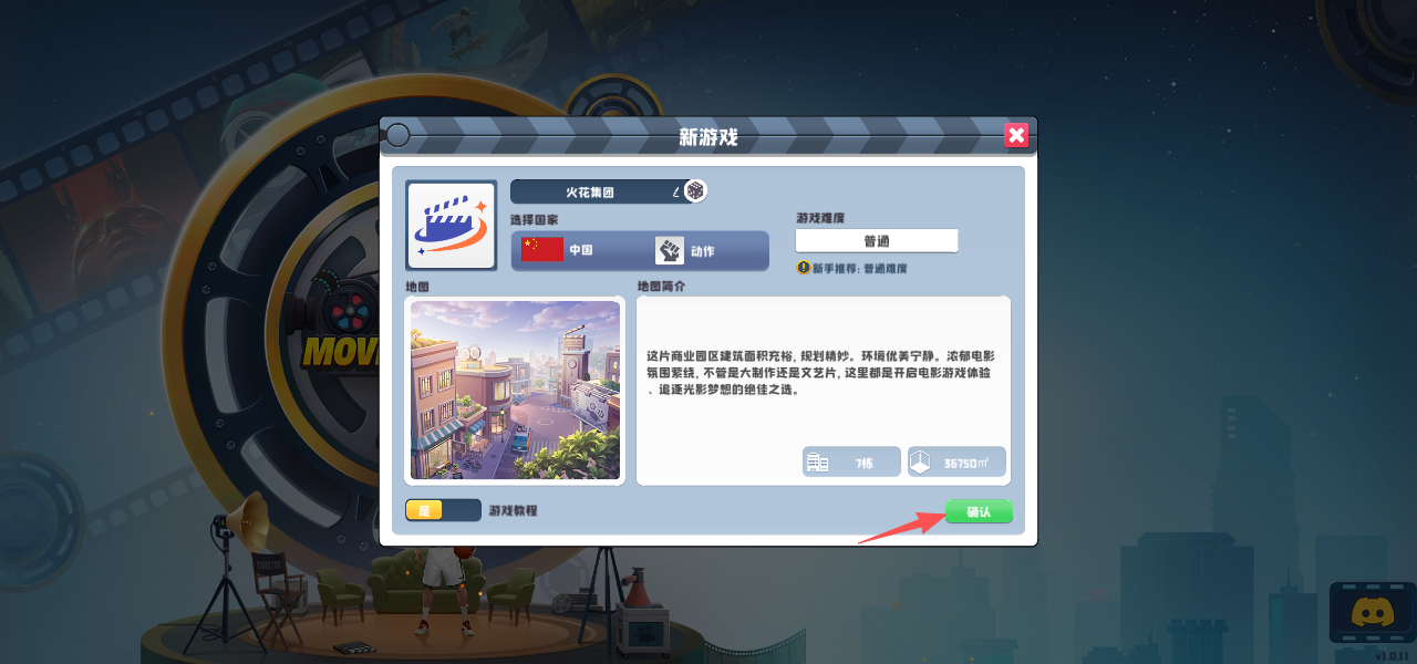 2、开始游玩,需要设置经营公司的详细情况和游戏难度,随后点击“确认”。