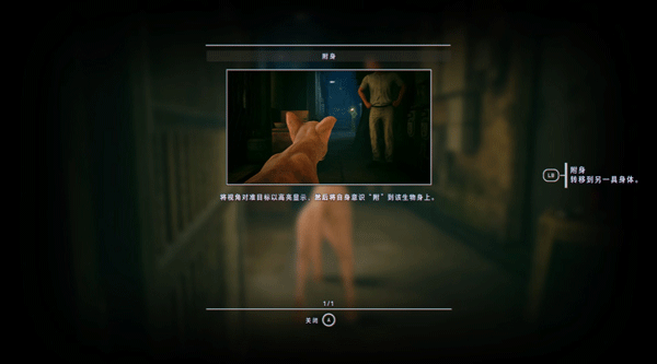 3、选择简单模式后进入游戏,开始游戏前有一段戏前剧情,接着跟随提示附身到一条狗上面;