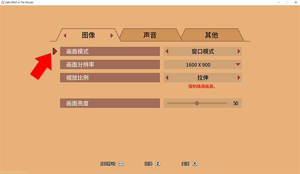 4、进入设置后,在图像选项卡,可在画面模式切换窗口模式与全屏模式,只需将前方箭头移动到画面模式,然后按z键选择之后使用←→切换选项即可。