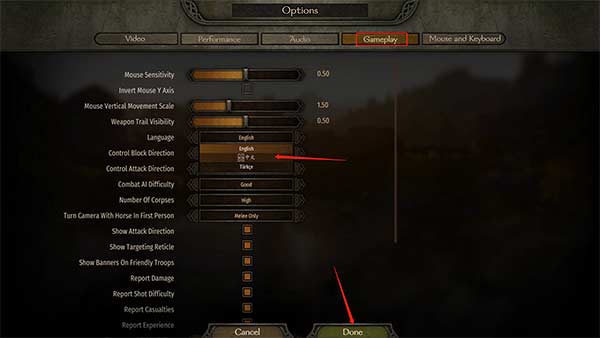 4、最上方选中Gameplay,找到Language下的简体中文,然后保存游戏;