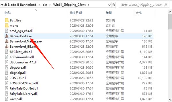 1、下载并解压本站的提供的文件,在Win64_Shipping_Client文件夹中,左键双击Bannerlord.exe进入游戏;