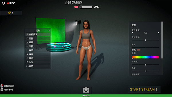 3、打扮调整你的初始角色;如肤色、口腔、面孔、鼻子等......完成后点击右下角的“START STREAM”;