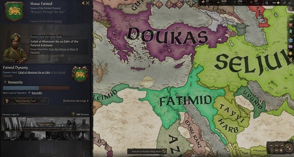 56、狡诈狐狸:用1066年的狐狸罗伯特开局,统治西西里王国,拥有伊庇鲁斯,希腊或帖撒罗尼迦王国,并将其所有初始伯爵领都改信主教。