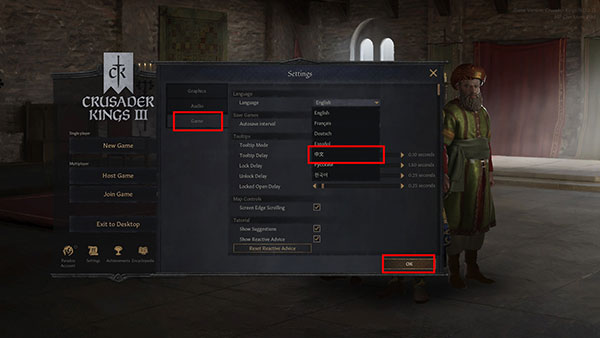 3、进入设置界面,选择Game-中文,点击ok,如图所示,