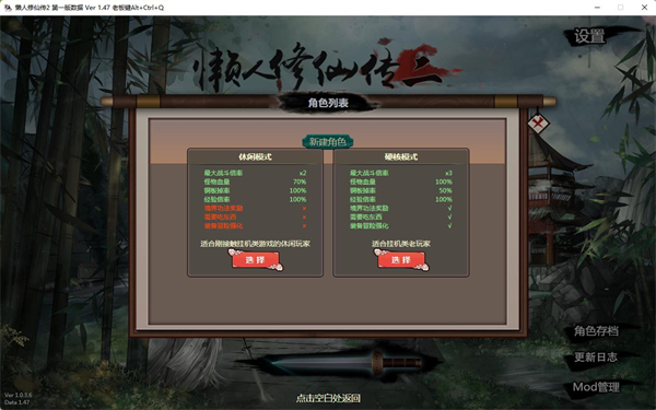 懒人修仙传2免费版是一款冒险RPG修仙养成游戏,玩家将扮演一位资质平平的凡人通过持续打坐练功、参悟心法、锻造灵宝等技巧认真修炼学习不断的提升你的修为境界,自由穿梭于修仙界中历练厮杀,打败无敌手成为最顶尖的修仙者,感兴趣的玩家不要错过哦!