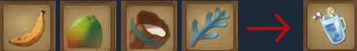 树木盆栽:种植棕榈种子,种子需要较长时间长成树,可以通过斧头看上去是否出现进度条判断,出现圆形进度条表示没长好,继续砍下去会摧毁整个盆栽。长成以后砍树会获得木板,茅草和椰子,椰子只能直接食用,吃完再次获得种子。砍树过程中椰子就有可能掉落。合成:8木板,4绳子