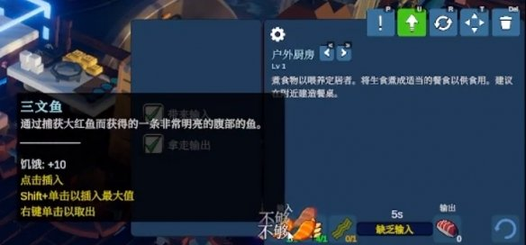 2、钓到后有几率获得三文鱼,在户外厨房里使用三文鱼制作出寿司。