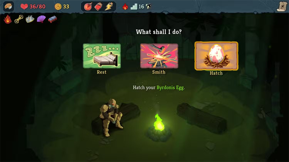 Note:一如既往,你只能在每个休息点选择一个选项。如果你选择孵化拜尔多尼斯蛋,你将无法在同一地点休息或锻造。