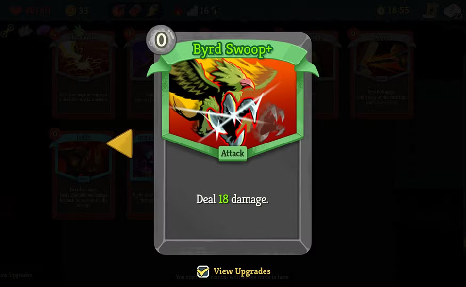 伯德飞翔是一张攻击卡,能造成高达14点伤害,升级后为18点,且零能量消耗。这比普通打击卡免费输出的伤害高三倍!