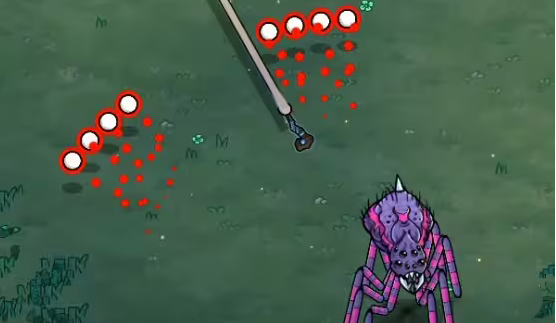 应对方法:始终通过走位和蜘蛛保持距离,在发射弹幕后,进行闪躲即可。