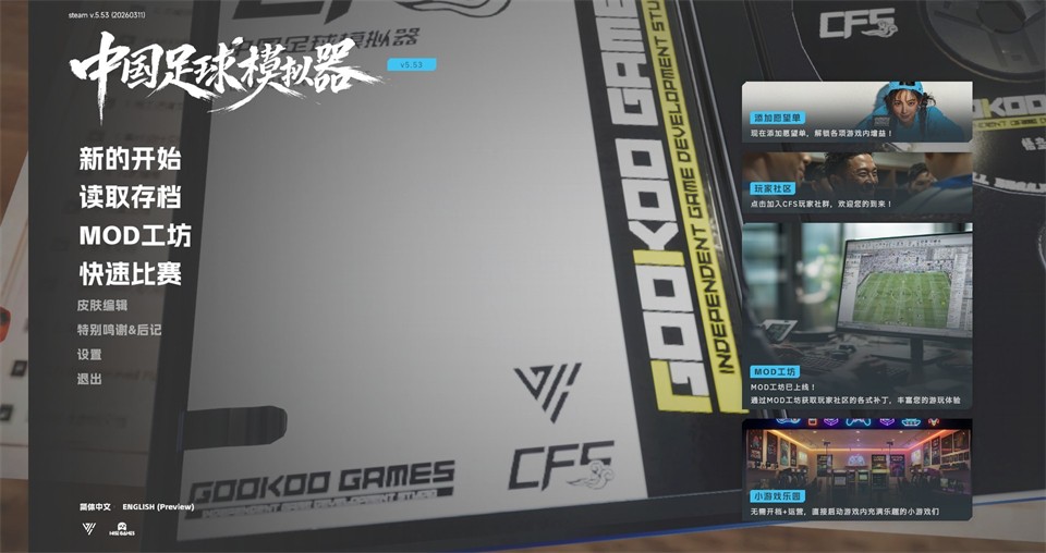 依托MOD社区,自定义游戏各项内容,包括球员名单、球员模型、动态背景等。