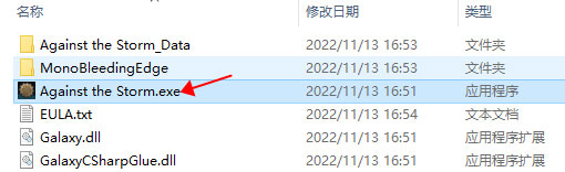1、在游戏目录当中,双击Against the Storm.exe启动游戏,