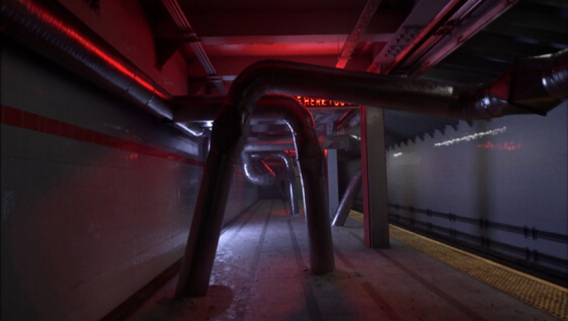 经过长长的滑梯滑到儿童游乐场底部后,发现一扇锁住的员工专用门,有两个静态开关为其供电。