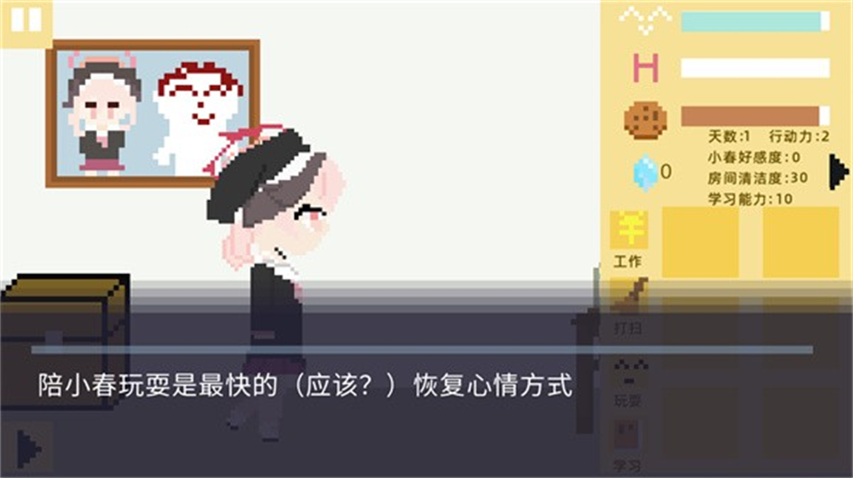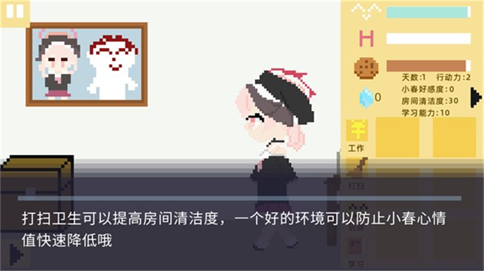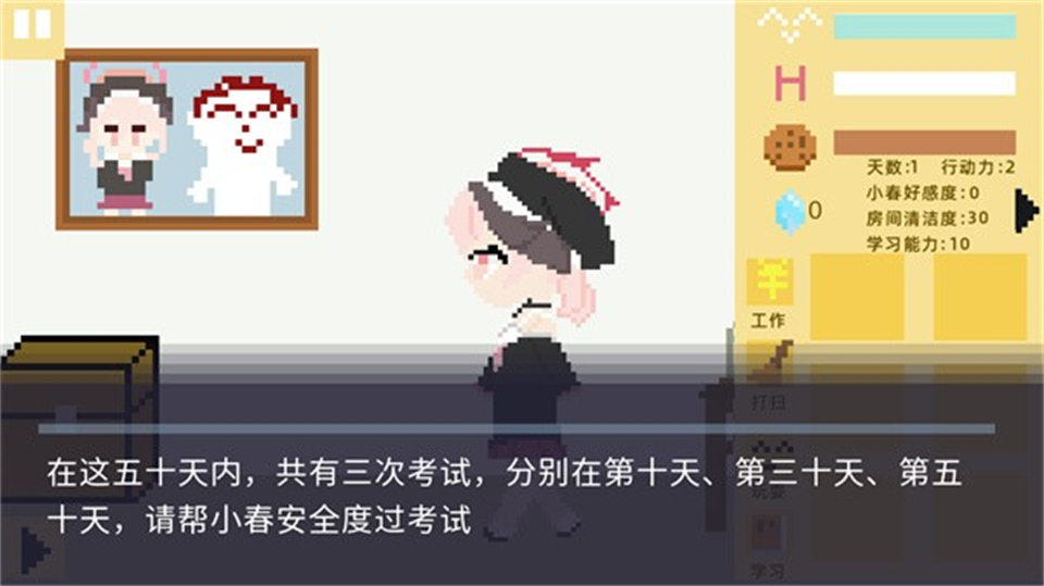 小春养成记免费版PC是一款冒险闯关剧情互动游戏,主要以独特细腻的像素画风打造为玩家带来全新的游戏,玩法自由度也极高,玩家将陪伴小春度过50天校园生活,认真开启学习、打工、社交、打扫等活动,在多个选择中做出不一样的结局等,玩法十分丰富,感兴趣的玩家不要错过哦!
