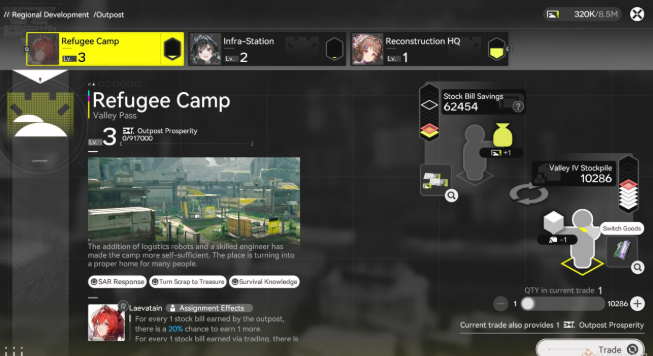 前往前哨站管理中的每个前哨站进行物品交易,确保库存单据不会达到上限。