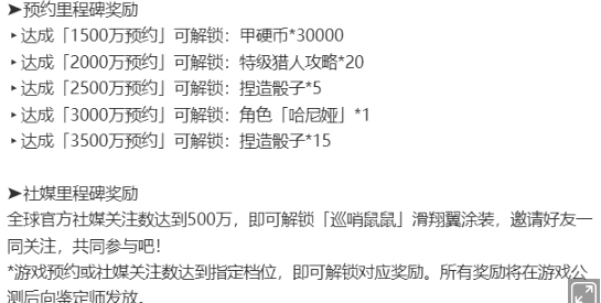 完成预约即可领取包含限定滑翔翼“巡哨鼠鼠”、甲硬币、抽卡资源及角色哈尼娅在内的丰厚奖励,预约人数每达成新里程碑还将解锁额外福利。