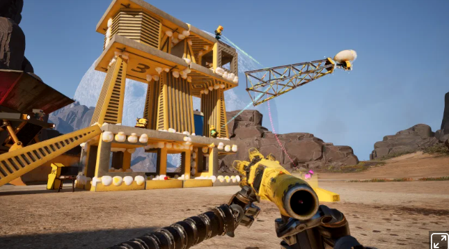 为应对混乱,玩家可使用一系列离谱的建造工具,包括重力枪、泡沫枪与喷气背包。这些工具使团队能够移动建材、稳定建筑局部,或在情况开始失控时快速重新定位。