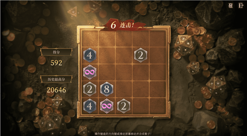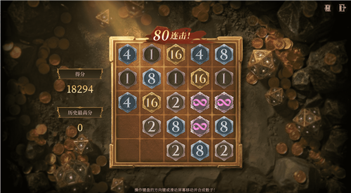 进入棋盘后,通过移动端滑动屏幕或PC端操作方向键,让相同的骰子相互碰撞并合并,不断将骰子升级,便能持续累积积分。