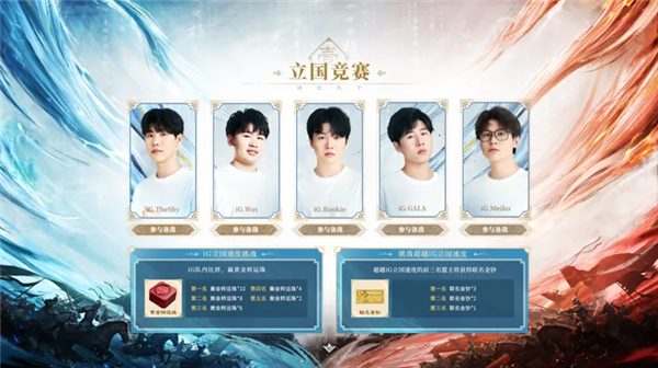 ●加入iG,角逐巅峰:主公可以选择加入iG选手组建的同盟,与选手并肩作战,助力选手快速立国!iG战队选手间将会相互比拼,立国速度越快,奖励越丰厚,黄金转运珠等你来拿哦!