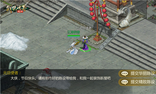 华灯初上赏烟火,坐拥经验福雨润。 江湖不只有快意恩仇,更有张灯结彩的人间烟火。活动期间,大侠参与日常玩法即可收集装饰材料,亲手装点您的江湖小窝。将精心合成的装饰道具呈交给元旦使者,每一次装扮都有随机惊喜奖励回馈。每当夜幕降临,帮会领地将开启“烟花庆典”。漫天流光溢彩不仅点亮了江湖夜空,更带来实实在在的福利——凡赏烟花的大侠,皆可获得海量经验,轻松修炼升级! 与此同时,还有许多庆典宝箱散落于城中角落,静候有缘人开启。赏景之余亦能满载而归,岂不快哉?