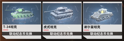 联动期间,可使用联动纪念币免费兑换虎式、谢尔曼、T-34三款经典主战坦克电子手办,让经典坦克在你的拉格朗日银河中永久成列。