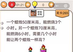 我不是猪头第265关怎么过 几个小时能让两个蜡烛一样高关卡攻略