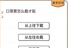 很多玩家可能对于口罩的基本戴法还不太了解,不清楚应该是从上往下戴,还是从左往右戴,而这恰恰是游戏的第213关,对于口罩用法不清楚的玩家,可以来看看下面的内容,即可知晓答案。