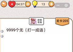 9999个无可以让你联想到什么呢?作为游戏的第205关,玩家需要找出与之关联的成语,其实这关还是有点难度的,很多玩家可能都猜测不出来,那么到底是哪一个成语呢?下面的攻略就告诉你答案。