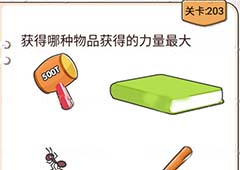 游戏的第203关需要玩家去找出力量最大的物品,关卡中有棍子、书本及电钻等东西,乍看起来有点无厘头,其实这关是根据一个典故所衍生的,那么答案到底是什么呢?感兴趣的玩家来看看攻略吧。