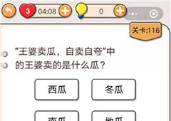其实很多玩家都想不到第116关的确切答案到底是什么,这是一个具体的典故,可能很多玩家都会将其当成脑筋急转弯,那么王婆卖的到底是什么瓜呢?不清楚的玩家快来看看攻略吧。