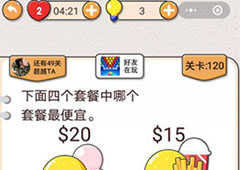 玩家在第120关需要在四个套餐中选择最便宜的哪一个,乍一看最便宜的是10元的哪一个套餐,那么答案真的是这样吗?不能顺利通关的玩家可以来看看下面的攻略,就可以知晓了。