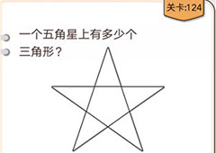 游戏的第124关其实非常简单,就是一个常识题,玩家如果有足够的耐性即可解出这个答案,那么一个五角星到底有多少个三角形呢?不想数的玩家可以直接来看攻略,就可以知晓了。