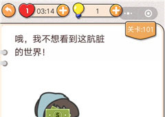 不知不觉之中玩家就已经到了101关了,这一关之中需要玩家让角色不再看到这个肮脏的世界,乍一看非常无厘头,其实这是一个梗,玩家如果不清楚的话,可以来看看攻略内容,就明白了。