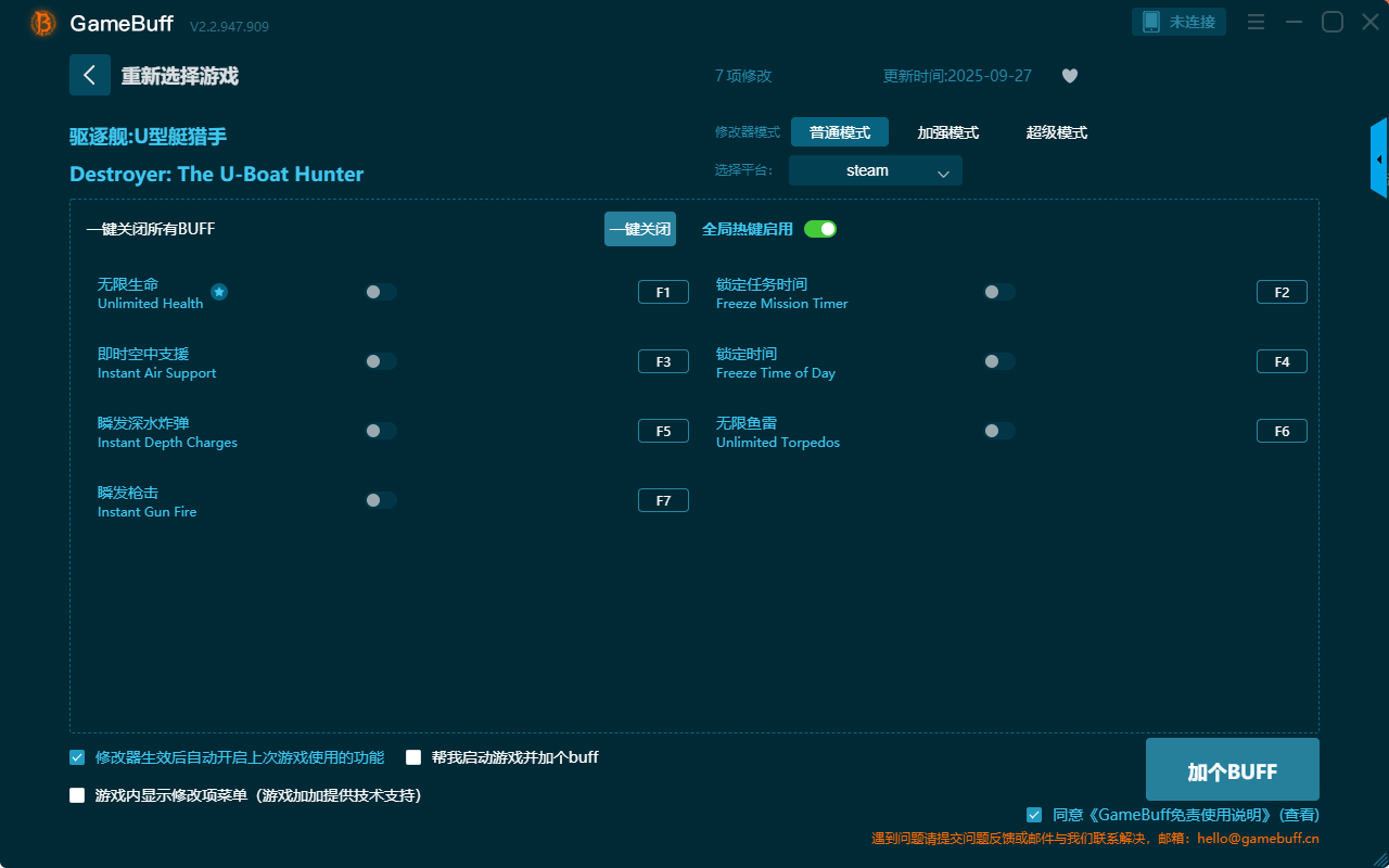 驱逐舰: U艇猎手七项修改器是一款功能强大的游戏辅助修改器工具,操作也十分的简单,可以自由设置拥有、锁定时间、无限鱼雷、瞬发枪击、瞬发深水炸弹、无限生命、即时空中支援、冻结任务计时器等七项功能内容,轻松解决在游戏中遇到的困难与挑战,感兴趣的玩家千万不要错过哦!