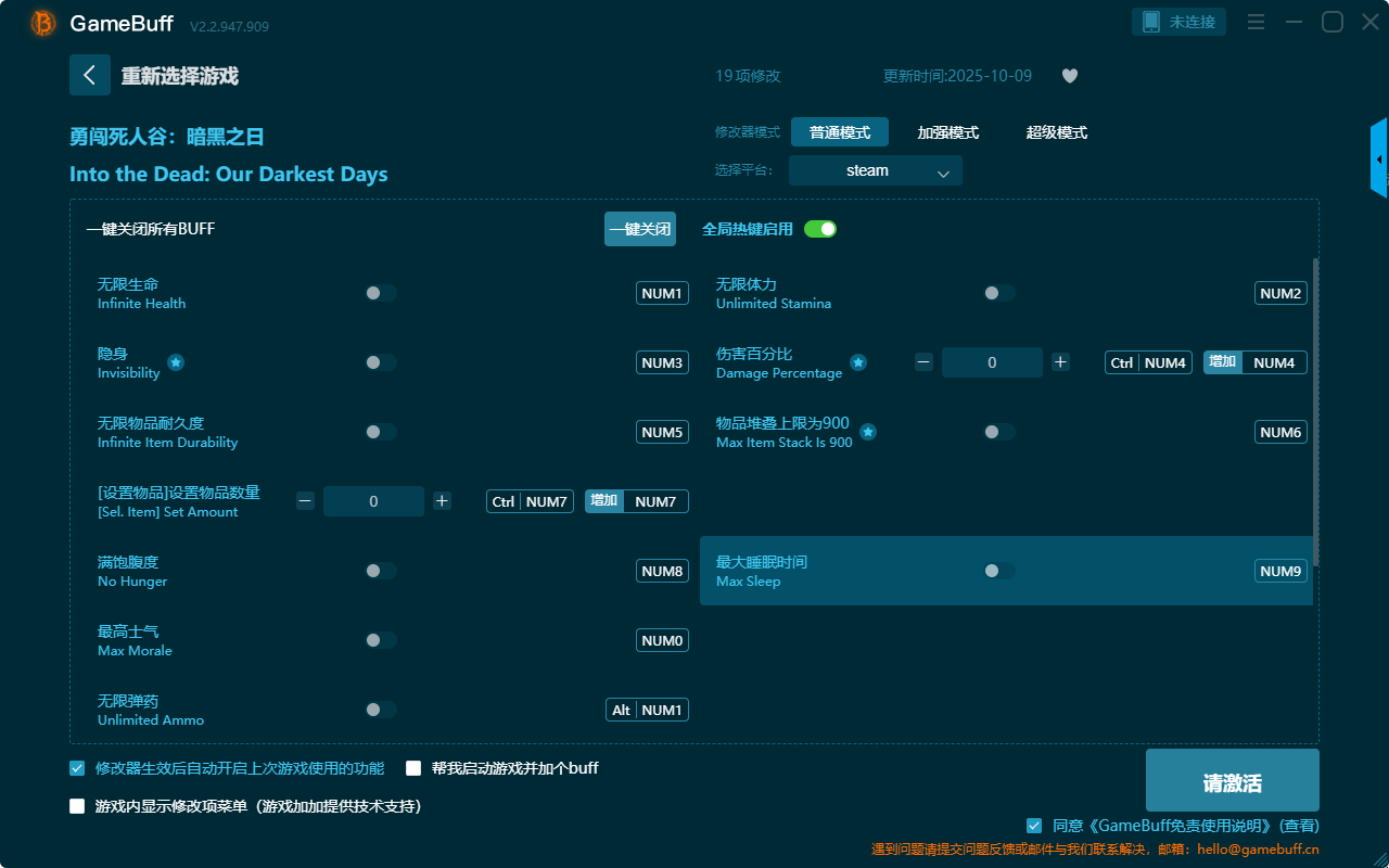 勇闯死人谷:暗黑之日十九项修改器是一款功能强大实用的游戏辅助修改器工具,可以自由设置拥有无限生命、无限体力、伤害百分比、最大睡眠时间、最高士气、无限弹药、无限物品耐久度、隐身、满饱腹度、一击必杀、快速合成、制作占用一个格子、免费切换相机等十九项功能内容,感兴趣的玩家千万不要错过哦!