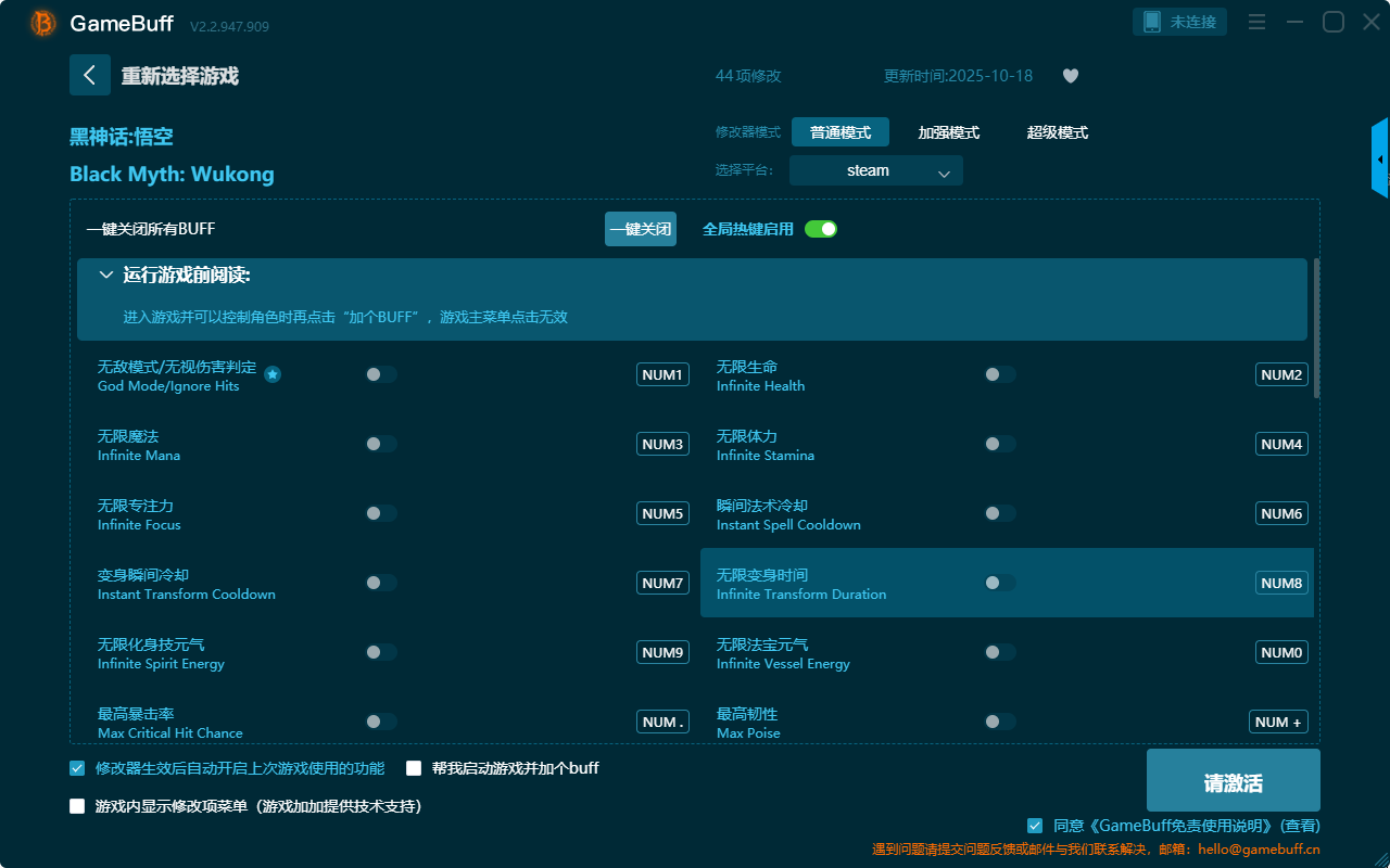 黑神话:悟空四十四项修改器是一款操作极其简单,功能强大实用的游戏辅助修改器工具,自由设置拥有无敌模式、无限魔法、无限生命、无限体力、无限变身时间、无限法宝元气、无限专注力、最高暴击率、无视伤害判定、最高韧性、防御倍率、编辑灵蕴、增加经验值、经验倍率、编辑灵光点等四十四项功能内容,感兴趣的玩家千万不要错过哦!