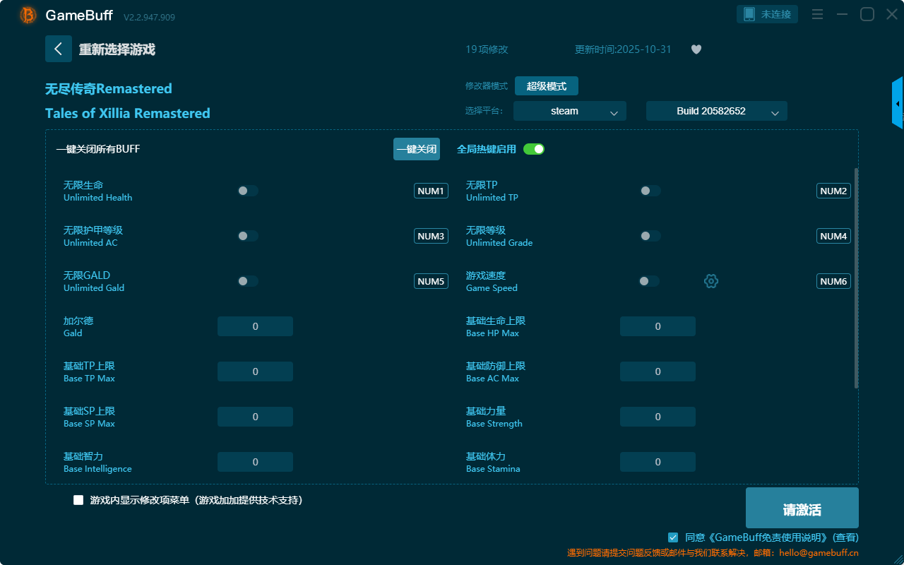 无尽传奇十九项修改器是一款操作极其简单的游戏辅助修改器工具,功能强大实用,可以自由设置拥有无限生命、无限TP、游戏速度、无限金钱、无限影响点、无限TP、无限护甲等级、加尔德、基础智力、基础体力、基础力量、基础生命上限、基础防御上限、基础幸运、基础精神等十九项功能内容,感兴趣的玩家千万不要错过哦!