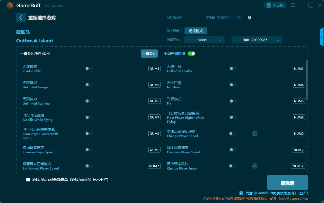 疫区岛三十九项修改器是一款功能十分强大的游戏辅助修改器工具,支持一键设置拥有无敌模式、无限生命、不会口渴、飞行模式、无限提咯、飞行时无碰撞、减少玩家速度、更改玩家跳跃、设置玩家正常速度、减小重力、设置正常重力、超级伤害、降低NPC伤害、提高NPC速度、无限弹药等三十九项功能内容,感兴趣的玩家千万不要错过哦!