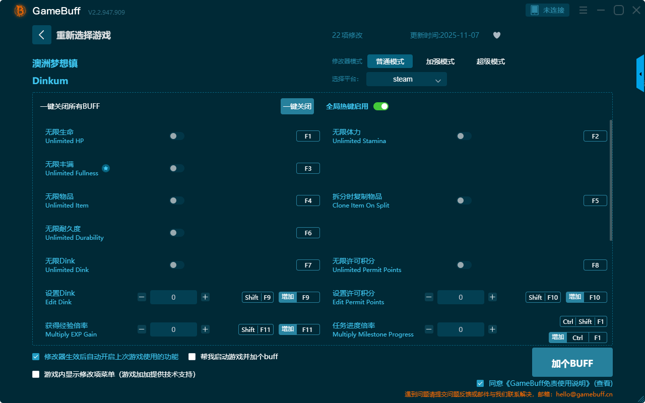 澳洲梦想镇二十二项修改器是一款操作极其简单的游戏辅助修改器工具,功能强大实用,支持自由设置拥有无限生命、无限体力、无限丰满、无限耐久度、获取经验倍率、无限许可积分、设置许可积分、任务进度倍率、无限物品、拆分时复制物品等二十二项功能内容,感兴趣的玩家千万不要错过哦!
