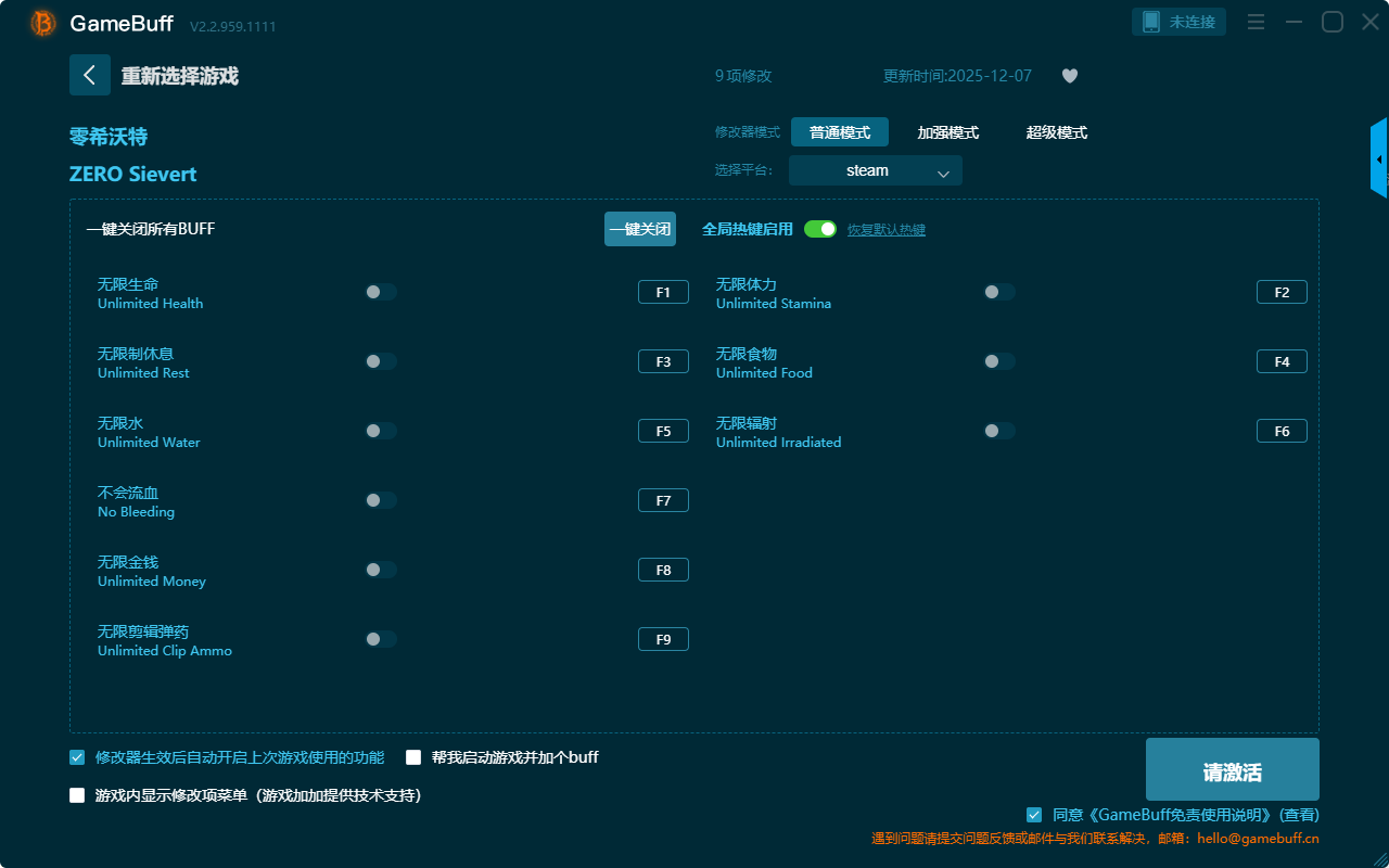 零希沃特九项修改器是一款功能强大实用的游戏辅助修改器工具,操作也很简单易上手,将自由设置拥有无限生命、无限体力、无限食物、无限辐射、无限水、无限制休息、不会流血、无限金钱、无限剪辑弹药等九项功能内容,感兴趣的玩家千万不要错过哦!