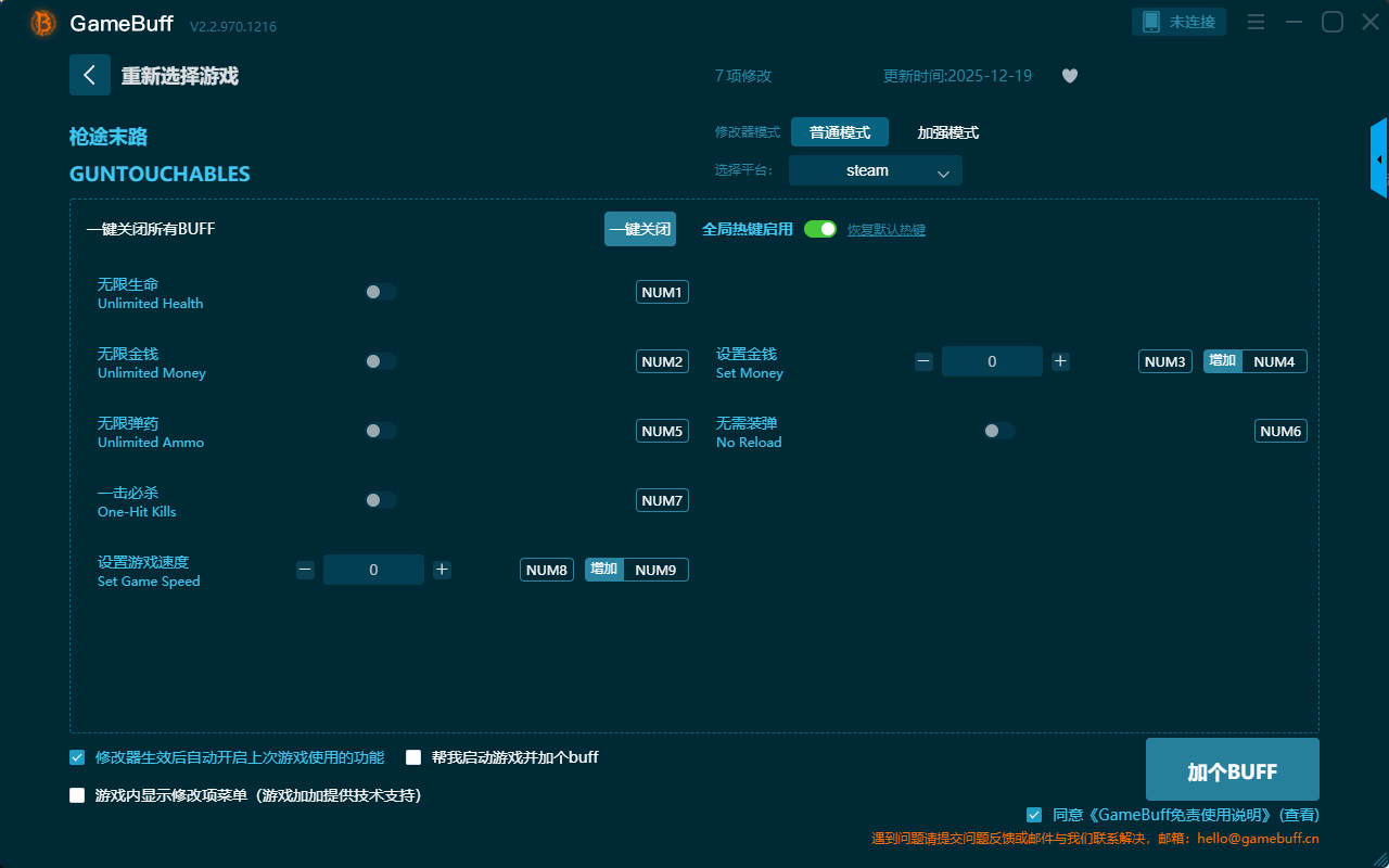 枪途末路七项修改器是一款操作极其简单的游戏辅助修改器工具,功能强大实用,可自由根据本身在游戏中遇到的困难设置拥有无限生命、设置金钱、无需装弹、无限弹药、一击必杀、设置游戏速度、无限金钱等七项功能内容,沉浸式体验游戏的乐趣与快感,感兴趣的朋友不要错过哦!