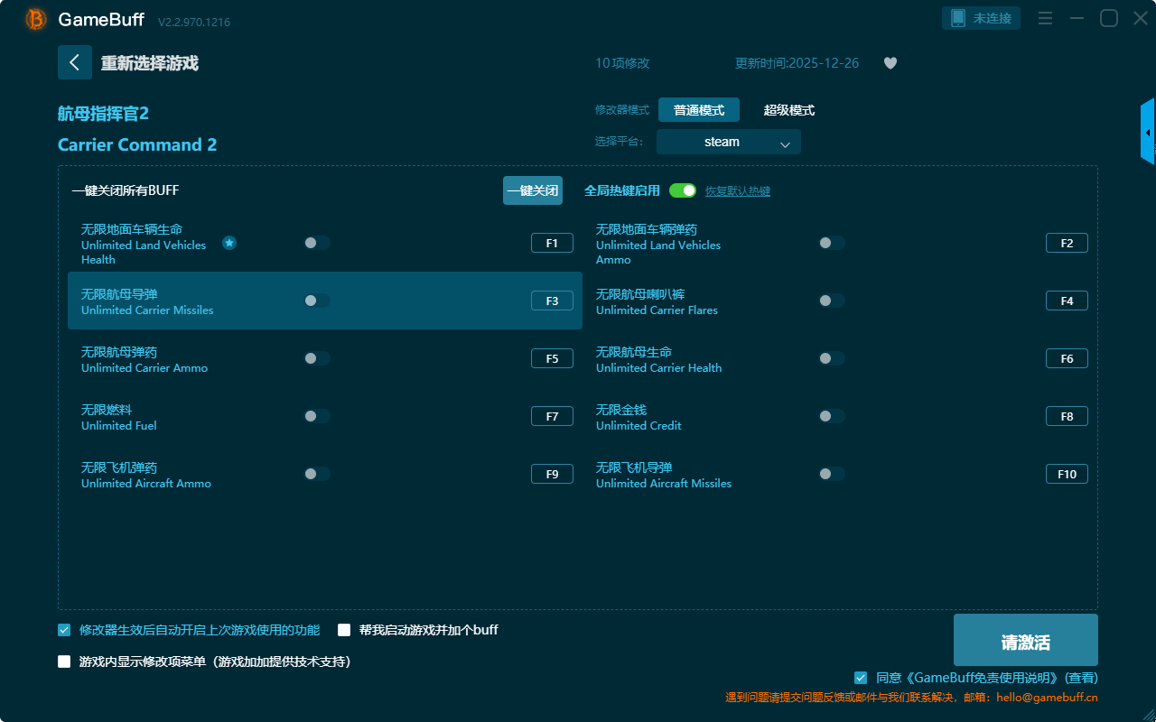 5、等待显示“BUFF加持成功”后,我们就可以在航母指挥官2游戏中使用按键来快速激活和关闭对应的修改器功能了。