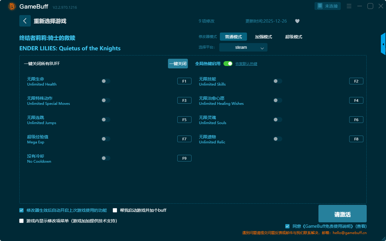 终结者莉莉:骑士的救赎九项修改器是一款操作极其简单的游戏辅助修改器工具,功能强大实用,支持一键设置拥有无限生命、无限技能、无限治愈心愿、无限灵魂、无限遗物、没有冷却、超级经验值、无限连跳、无限特殊动作等九项功能内容,感兴趣的玩家千万不要错过哦!