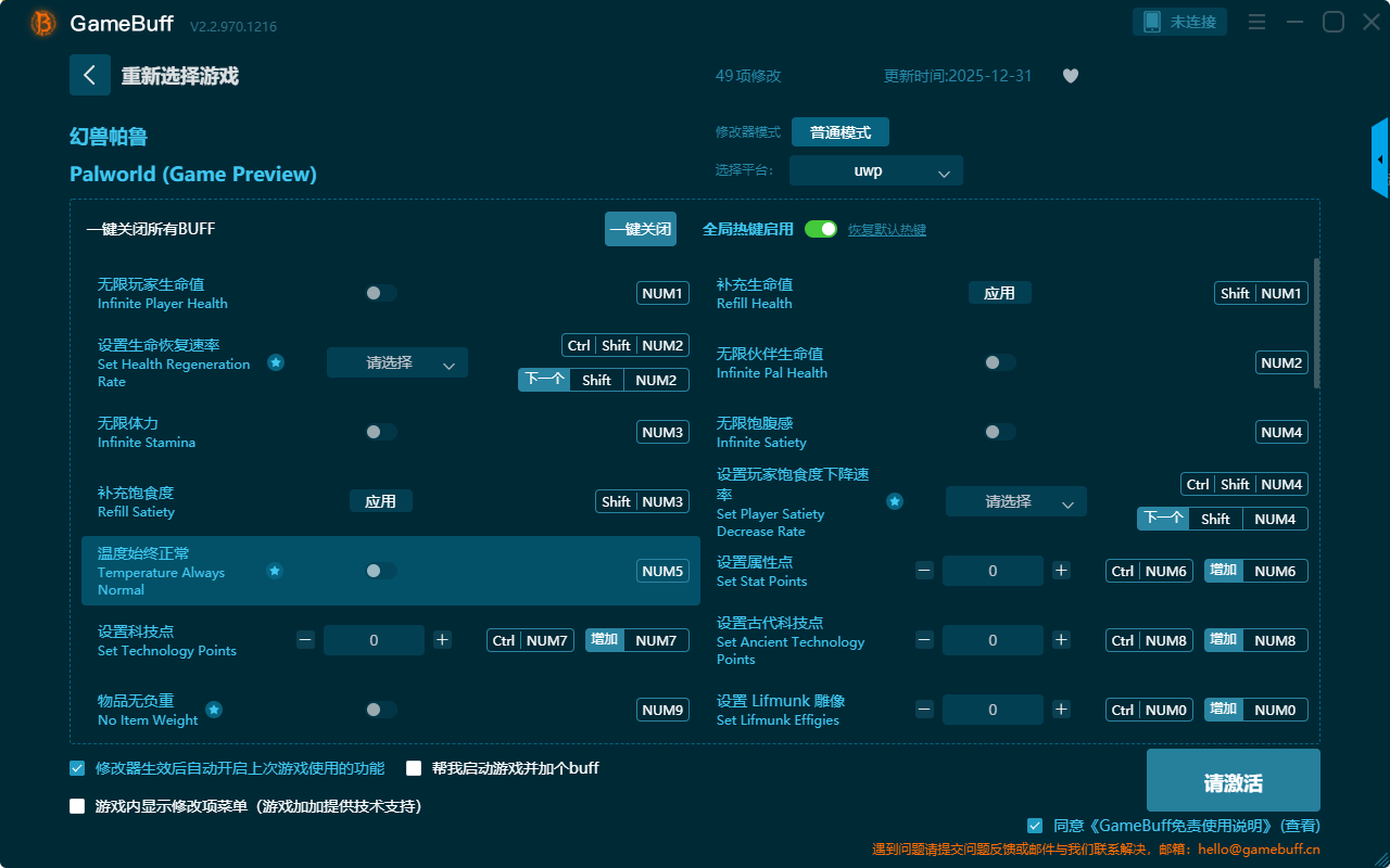 幻兽帕鲁四十九项修改器是一款功能强大实用的游戏辅助修改器工具,操作极其简单,可自由设置拥有无限玩家生命值、设置生命恢复速率、无限体力、补充饱食度、无限饱腹感、无限伙伴生命值、温度始终正常、设置科技点、物品无负重、设置古代科技感、设置属性点、都是稀有伙伴、立即建造、无限武器耐久度等四十九项功能内容,感兴趣的玩家千万不要错过哦!