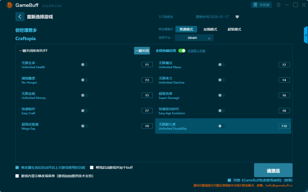 创世理想乡十项修改器是一款功能强大实用的游戏辅助修改器工具,操作极其简单,可自由设置拥有无限生命、无限魔法、无限体力、超级伤害、无限耐久度、超级经验值、无限金钱、满饱腹度、快速制作、快速进化时代等事项功能内容,感兴趣的玩家不要错过哦!