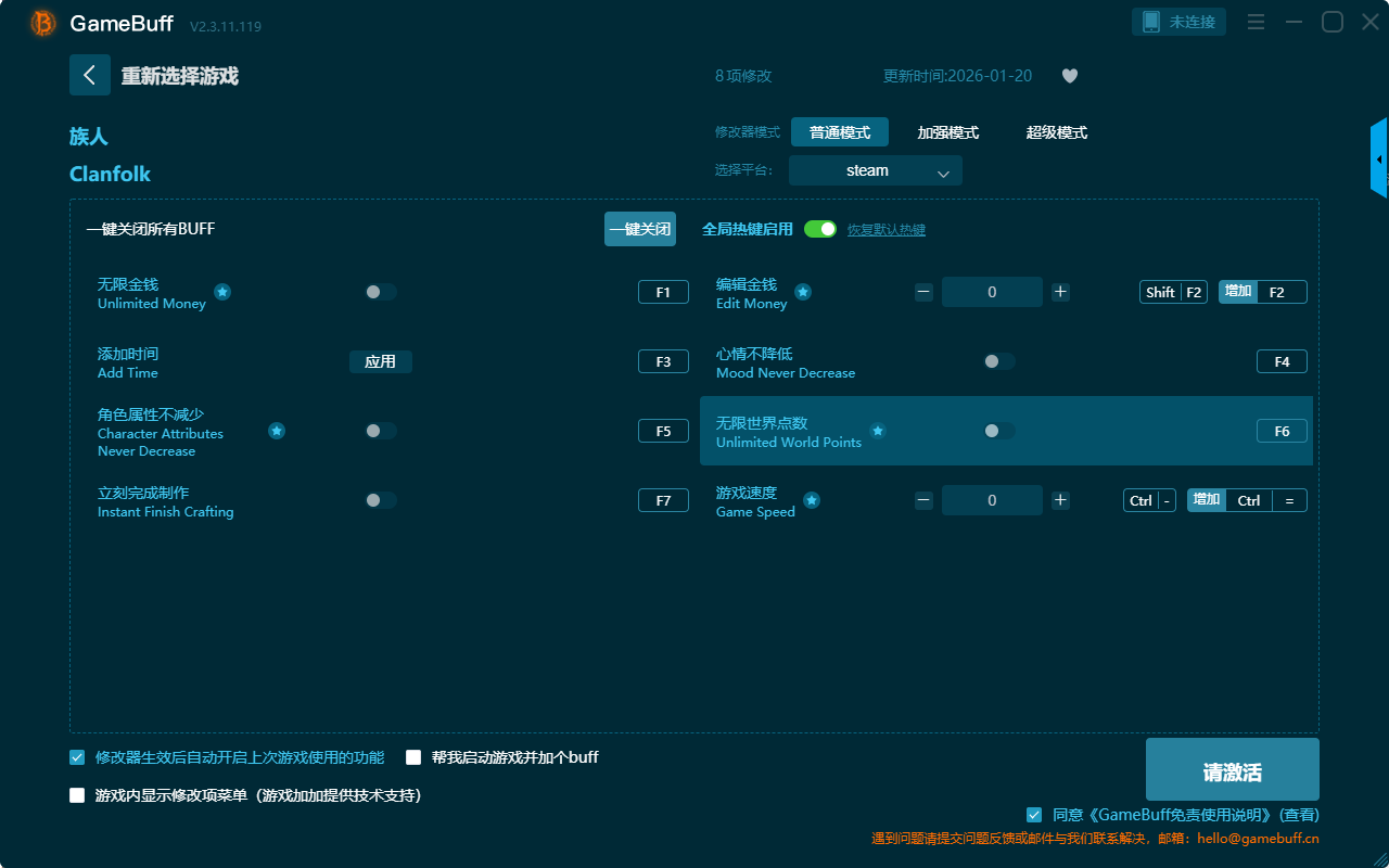 1、确认修改器是否适用于你游戏的版本(游戏版本号、发行平台等,不同版本特征不同修改器可能会失效);