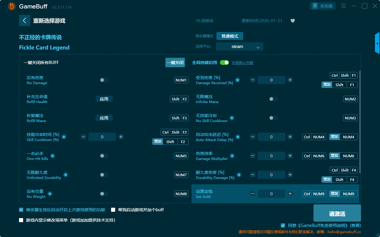 不正经的卡牌传说十六项修改器是一款功能强大操作简单的游戏辅助修改器工具,可一键设置拥有没有伤害、补充生命值、恢复魔法、受到伤害、无限魔法、伤害倍率、设置金钱、没有负重、无限耐久度、一击必杀、技能冷却时间、自动攻击延迟、经验倍率等十六项功能内容,感兴趣的玩家不要错过哦!
