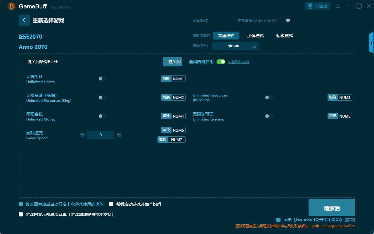 纪元2070六项修改器是一款操作极其简单的游戏辅助修改器工具,根据本身在游戏中遇到的困难与挑战自由一键设置拥有无限生命、无限许可证、无限金钱、无限资源(船舶)、游戏速度等六项功能内容,感兴趣的玩家快来当游网下载体验一下吧!